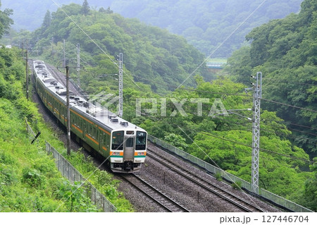 JR上越線「水上付近の山間部を走る211系普通列車」