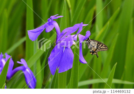 京都市大田ノ沢 野生の杜若とアゲハチョウ