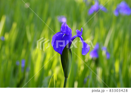5月晴れの朝、京都市北区大田神社のカキツバタ群落が綺麗