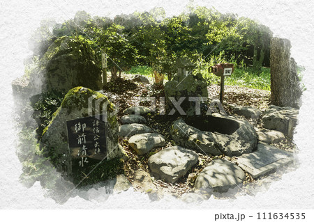 水彩画風 上越 春日山城跡 謙信公出陣御前清水 新潟県上越市