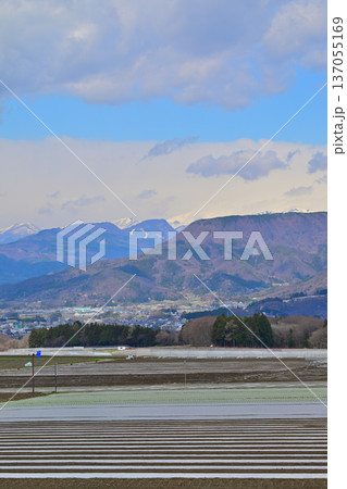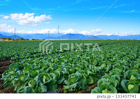 キャベツ畑 上越の山並 赤城高原 昭和村