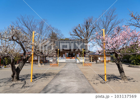 上里菅原神社拝殿と梅の花