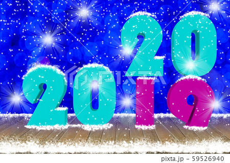 2020 Text on wood table top with snow and