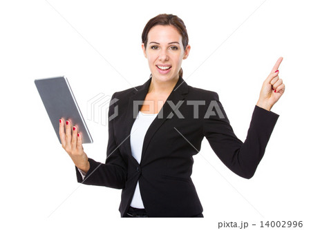 Businesswoman use of tablet and finegr point up