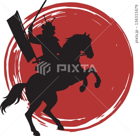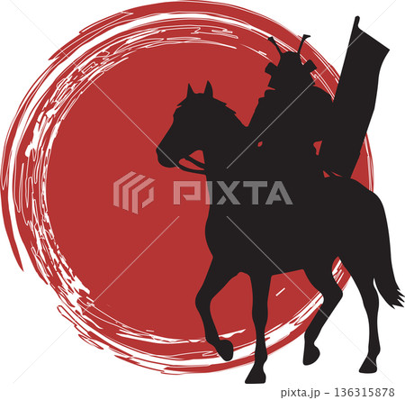 走る馬と武士のシルエット