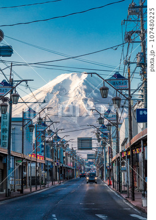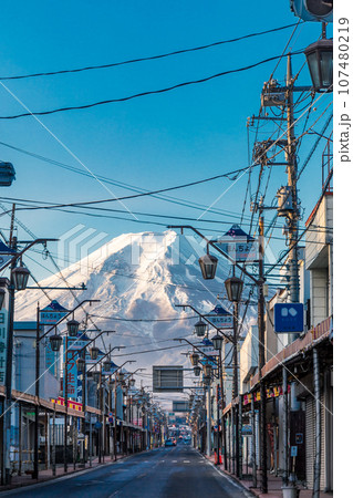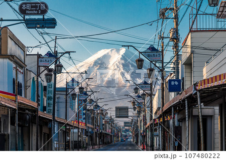 「山梨県」富士吉田市の本町商店街から望む富士山