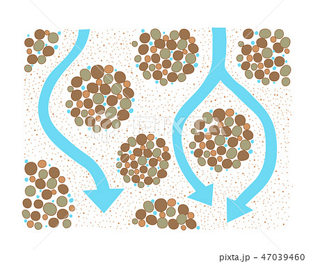 土 団粒構造 水の流れ ベクター素材 モノクロ 白黒