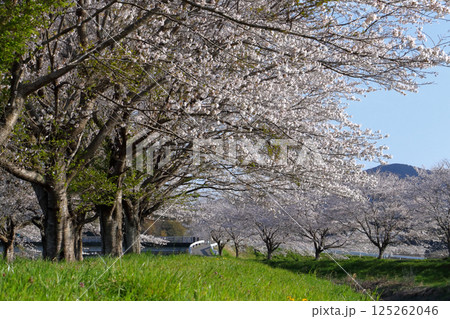 ロマンチック茨城(笠間市の国見山を源に流れ来る涸沼川の畔に見事な桜並木「夢千本桜」。)笠間市、下市毛
