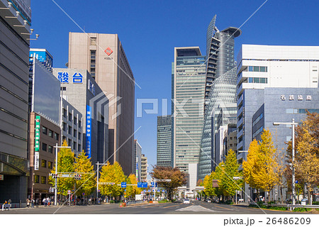 名古屋市中村区名駅都市風景 名駅通 下広井町 交差点 秋