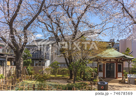 [東京・谷中] 谷中の岡倉天心記念公園にある岡倉天心史蹟記念堂と桜の木。