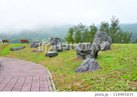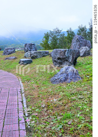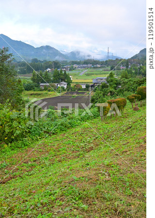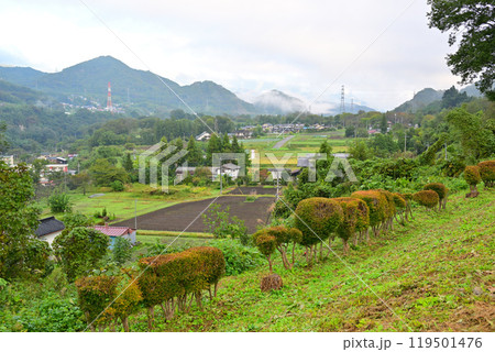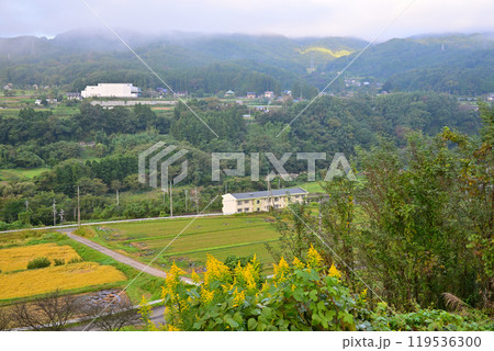 朝靄のかかる下牧PA下り線付近の風景 旧月夜野町 群馬県みなかみ町