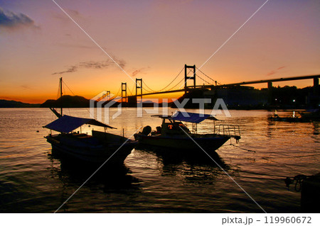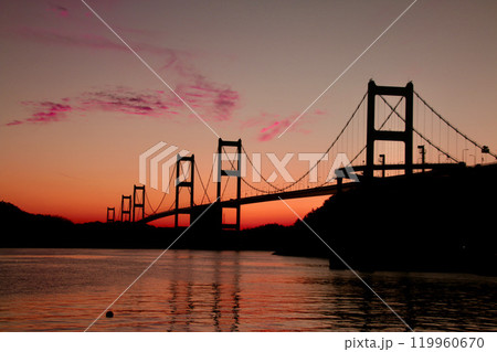 しまなみ海道・来島海峡第一大橋・夕暮れ(愛媛県・今治市)