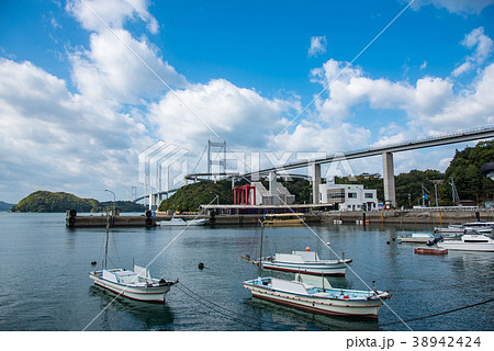 しまなみ海道 大島の下田水港から見た来島海峡大橋