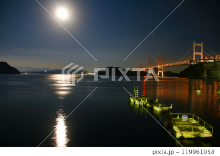 しまなみ海道・来島海峡第一大橋・夜景(愛媛県・今治市)