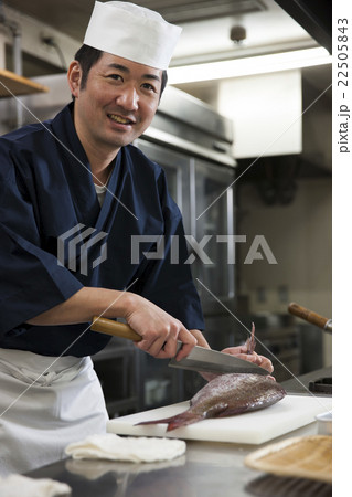鯛をさばく調理師