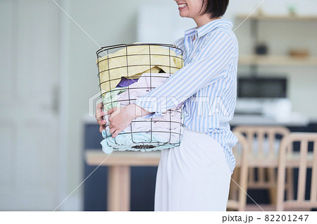 ランドリーバスケットを持つ女性