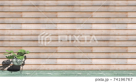 板壁と観葉植物の背景画像