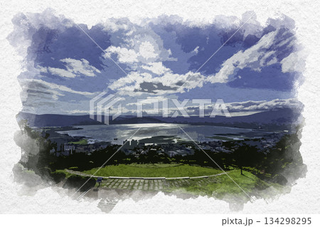 水彩画風 諏訪立石公園からの諏訪湖 長野県諏訪市