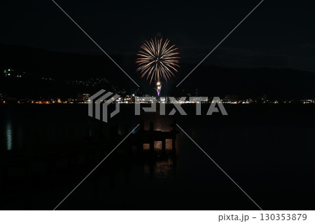 下諏訪港の月と花火