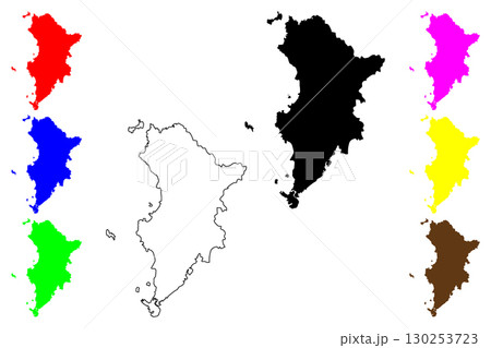 Shimonoseki city (Japan, Nihon-koku or Nippon-koku, Chugoku region) map vector illustration, scribble sketch Shimonoseki-shi map