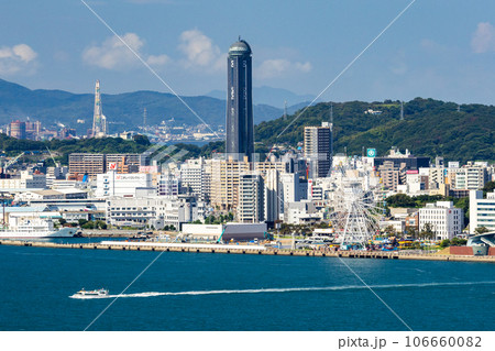 福岡県 門司港から見た山口県下関市街 海峡ゆめタワー方面