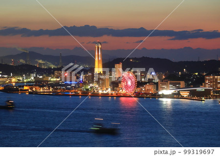関門海峡と下関の夕暮れ 福岡県北九州市