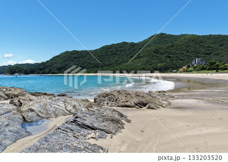 宮崎県延岡市にある「下阿蘇ビーチ」海水浴場の白浜と青い海