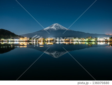 Mount Fuji at dawn(sky) from Lake Kawaguchi in Nagasaki