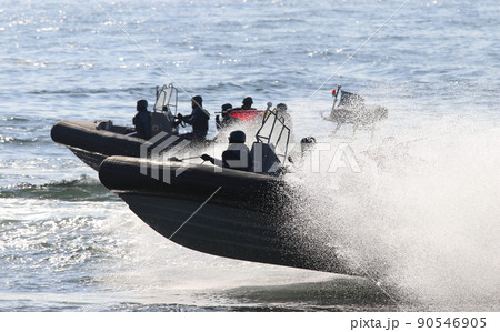 RHIBを使用した不審船対処訓練を披露する、海上保安庁の特別警備隊