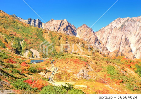 紅葉の八方尾根自然研究路から見る不帰の剣と天狗の大下り 長野県白馬村