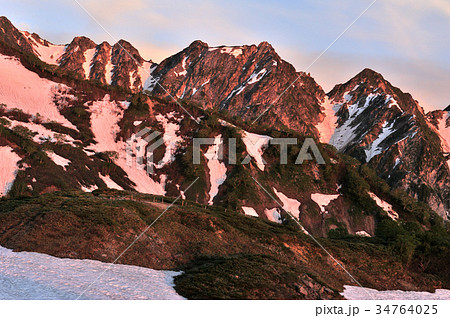 二股から見る美しい朝日を浴びる不帰の剣 長野県白馬村