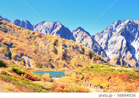 八方尾根自然研究路 八方池周辺の美しい紅葉と白馬連峰 長野県白馬村