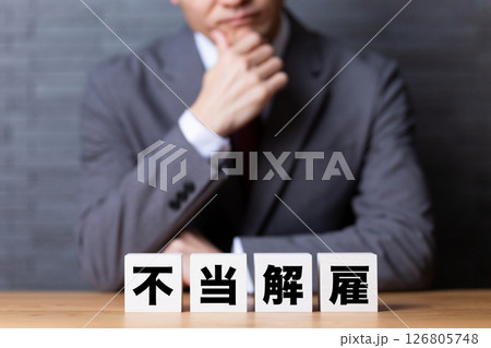 不当解雇と書かれたブロックが置かれたデスク