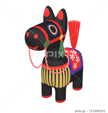 干支のイラスト素材 午年 馬の首振り人形(1_3) 黒