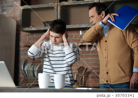 Cruel male person punishing his son