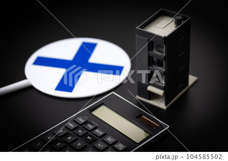 黒い背景に置かれた新一万円札の札束と黒い電卓