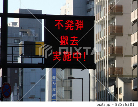 大阪市内で実施された、不発弾処理に伴う交通規制の電光表示板