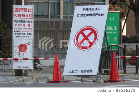 大阪市内で実施された、不発弾処理に伴う交通規制