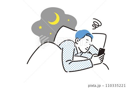 シンプル イラスト 寝る前にスマホをさわる女性