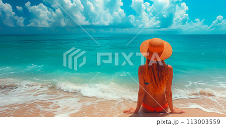 A girl with a magnificent figure is on vacation at sea. Sexy girl on a wild beach - AI generated image