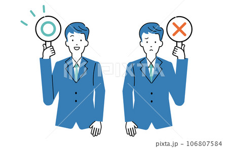丸とバツのプレートをもつビジネスマンのイラストセット