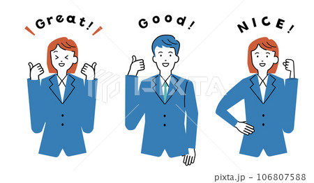 いいねのポーズをするビジネスマンの男女のイラストセット