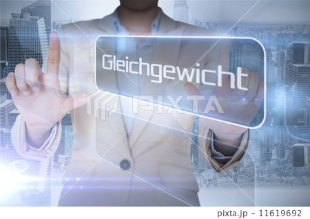 Businessman presenting the word balance in german