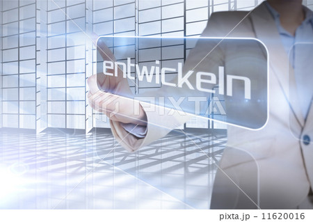 Businessman presenting the word evolve in german