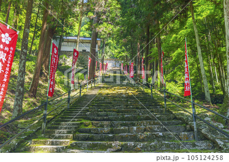 與喜天満神社 新緑に包まれた長い石段の参道(奈良県桜井市初瀬)