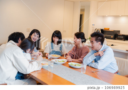 みんなでごはんを食べる大家族