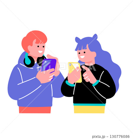 ポップでカラフルなZ世代の若者 スマートフォンを持つ人々のイラスト