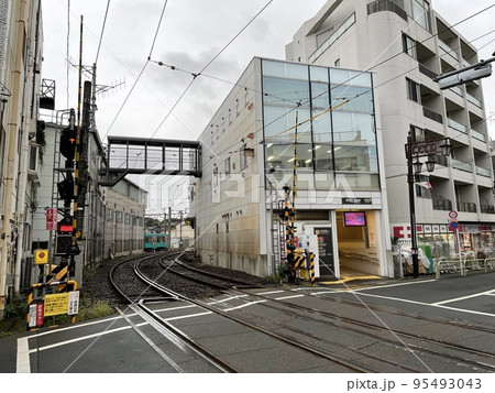 世田谷・紫陽花咲く松原駅近くを走る東急世田谷線