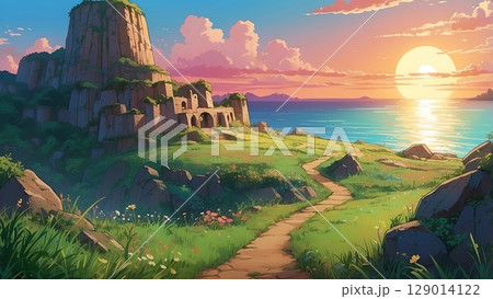 ゲーム背景 洞窟の先にある遺跡ダンジョン入り口