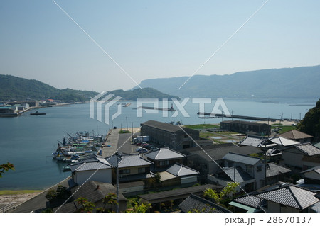 高松市庵治町、庵治半島の先端と内海の島々、遠景は小豆島